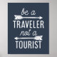 Var resenär, inte turist. Vår konstskrift har citatet i vitt skript och blockerar monolintypografi, som är märkt med två vita pilillustrationer på en rik marin blå bakgrund. Perfekt för resan älskare eller agent i ditt liv. Gör ett fantastiskt tillägg till en gallervägg av semesterfoton!