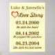 Den här poster gör perfektens årsdag eller bröllop-gåva! Anpassa den med det viktiga data i ditt förhållande eller lycklig-parets. Inkluderar datum när du föll i kärlek, har sysselsatt och gift. Alla ord och data är lätt anpassade för att göra detta till perfektens gåva!