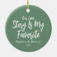 Lägg till festlig munterhet till din helgdag-décor med vår Kärlek-historia är min favoritprydnad, med en glatt grönt och en personlig av paret lycklig. Perfekten för att fira kärlek och skratt under säsongen gör denna charmerande keepé en tankfull gåva eller ett uppskattat tillskott till Julgran. Detta prydnadsämne är en del av en vintersamling med samordnande helgdag. Vi uppmuntrar er att utforska fullt för att skapa ett perfekt matchat party firande.
