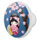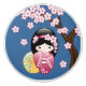 Vår Kokeshi Doll - Cute Japansk Geisha på Blue Knopp