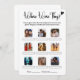 Var var de? Möhippans spel | Inbjudan till elegant bröllop Fotogäster ger dig roligt, minnen och ett litet mysterium till firande med var de fanns? Möhippans spel | Inbjudan till elegant bröllop Photo Guessing - ett kreativ- och hjärtbeväpningsarbete som gäster i inbjudan ska gissa var foton med bruden och brudgummen finns. Designad med minimalistisk elegans, blommigt- eller vattenfärgaccenter som tillval och modern manusgrafi, ger det här spelet charm och skratt till alla uppsamlingar före bröllop. Perfekt för möhippor, par-duschar, möhippor eller förlovning firande, detta fotobaserade spel har en rad bilder av paret under hela deras relation - från resor till vardagsstunder - och utmanar gästerna att gissa var varje foto togs. Det är ett sött sätt att återuppleva parets historia och gnida samtalet mellan gästerna. Anpassa kortet med bridens namn, händelsemedatum eller tematiska beröringspunkter för att matcha stilar som boho-möhippa, modern blommigt eller romantisk minimalism. Du kan till och med lägga till ett meddelande eller instruktioner om hur du spelar upp. Det här spelet är perfekt på gäst bord, i favoritsäckar eller som en del av en möhippa-verksamhet i station. Det är också en underbar keepsaké för paret. 🖤 Klicka på Anpassa nu för att skapa var de var? Spela och gör din möhippa till fullt av meningsfulla moment och roligtar. Var fanns möhippa-spel, fotogissande möhippa-spel, elegant bröllop-duschaktivitet, gissa platsspelet, fotoutmaning för möhippan, par reseminnesspel, blommigt-aktivitet, boho brudens sida-spel, modern möhippa-utskrivbarhet, möhippa-fotokollage