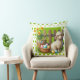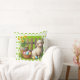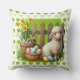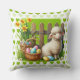 Ett påsklamm med korg med ägg på en grön kastkudde med gröna hjärtan för din påskdekor