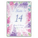 Ett bra och redigerbart bordsnummer i bröllop, med underbart blomstrande grenar av lilak i rosa och lila och redigerbar text på elegant gammaldags vit papper. Anpassadet Pappra Kopp Tallrikar, Vin-etiketter, bröllopsinbjudningar, Spara datuminbjudningar, riktningar, bostäder och informationskort. All sak du behöver för din vackraste dag i livet. Det här är det bästa och nummer 1-designen för din speciella dag. Anpassadets inbjudan till romantiskt bröllop. Skapat med Kärlek by UTTART