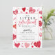 "Gör dig redo att fira med vår inbjudan till Lilla Älsklings födelsedagsfest! Denna inbjudan är perfekt för alla februarifödelsedagar, på eller runt alla hjärtans dag. Med en rolig och modern design med en mängd röda akvarellhjärtan, kommer den säkert att få dina gäster att känna kärlek. Missa inte festen - markera era kalendrar nu!"