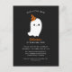 Fira din lilla boo födelsedag med det här söta Halloween-matade födelsedagsinbjudan vykort. Det illustrerar ett vackert spöke som bär en hatt från party. Inbjudan har ett svart, vitt och orange färg-schema och vykortets baksida kan användas för mer information om party eller ett personligt meddelande från kort.