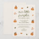 Pumpkintemat "vår lilla pumpa" födelsedagsfest inbjudan. Vilken ålder som helst kan användas! Anpassa enkelt ordalydelsen med dina party-detaljer så att inbjudan blir din egen!