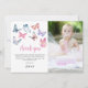 Tacka era gäster för att de kom till er lilla fjärils första födelsedag med våra charmiga barn fjäril födelsedag tackkort. Med ett foto, vacker samling akvarellfjärilar och en modern mall är dessa tackkort det perfekta sättet att få era gäster att le.