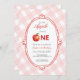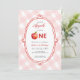 Markera ditt barns första födelsedag med den här roligten äppeltemade inbjudan. Med ett fet rött äpple, en ginghamcheck bakgrund och en lekfull typografi är den här designen perfekt för en fruktträdgårdsinspirerad fest eller födelsedag. Enkel att anpassa för din lilla speciella dag.