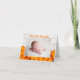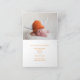 Det här vackra, moderna Thanksgiving-kortet med nyfödd-foto har ett fotografi av din söta nyfödda baby under orden Vår lilla pumpa i orange. Det här snygga höstfotot med trendigt vitt trä bakom lappen med pumpor är ett elegant födelsekort för Halloween eller Thanksgiving.