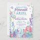 Gratulera till nästa födelsedag av din magiska lilla sjöjungfru med den här fina vattenfärgsdesignen. Denna söta vattenfärg under den lilla vatten-sjöjungfruns kallelseinbjudan till födelsedag skapas i en vacker färg-palett med vatten, teal, blått, grönt och nyans av lila. Den här inbjudan anger en roligt för din lilla födelsedag som är perfekt för simning eller sommar-party.