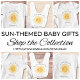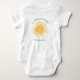 Den här söta baby bodyn är dekorerad med en fantasifull leende sol och "Vår lilla solstråle" i stilfull script typografi. Den är lätt att anpassa. Original Watercolor © Michele Davies.