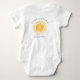Den här söta baby body är dekorerad med en gul leende sol och "Vår lilla solskensstråle" i stilfull script typografi. Den är lätt att anpassa. Original Watercolor © Michele Davies.