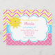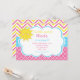 Vår lilla Sunshine Pink och Gul Födelsedagsinbjudan. Den har gul och rosa Chevron och en rosa Quatrefoil-bakgrund. Orden kan ändras till dina egna detaljer.