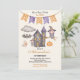 Fira din flicka första födelsedag med en söt och pookisk Halloween-inspirerad design. Med pastellhäxor, pumpor, spöken, fladdermus och ett hemsökt hus i mjuka vattenfärgtoner, är denna inbjudan perfekt för en magisk höst firande. Helt redigerbart och tilltalande nog för att locka alla dina gäster.