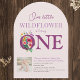 Fira din första födelsedag i flicka med en inbjudan till en boho-blommigt med starkt och dynamiskt färg. Den här inbjudan till anpassningsbar innehåller utrymme för ditt barns foto, namn och alla dina party-detaljer i elegantens skripttypografi för att göra en vacker keepsaké.