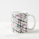 Mugg har en utformning av stora upprepande block av linjer som kor varandra har i rosa, mörkare rosa, ljust grönt, mörkare grönt, grädde och svart. Om du tycker om designen men föredrar olika färg, säg mig.