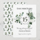 Det här redigerbara Save the Date-kortet har en vacker botanisk grönskram bård med dekorativa siffror för datumet. Enkelt men elegant.