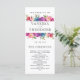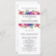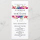 Elegantens botaniska ceremoniprogram i bröllop med namn och detaljer med ett ram av vattenfärgsfärgade löv i grönt och ljusblommor i rosa, blått och lila. Anpassa snyggtens mörk grått-text på båda sidor av kortet med din anpassningsbar, bröllopsfest och tack för att du skrev det. Ett vackert val för elegant utomhus bröllop eller bröllop firade på landsbygden. Samordnad insamling till Vår Lush bröllop Kontakta oss via butiken eller skrivan på citronelladesign@gmail.com om du behöver hjälp eller anpassningsbar.