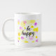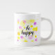 Modern inspirationsincitationstext - var lycklig - vid vattenfärgpunkter för rosa och gult| Bigstock® - Alla reserverade Höger.