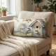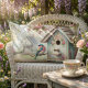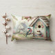 Vår med pastellblommor och fågel lumbarkudde
