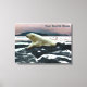 En björn för polarna (Ursus maritimus) vilar på sten under isförpackningens vår smältning. Lägg till din egen text.