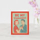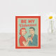 Ta ett steg tillbaka i tiden och skicka tidlös kärlek med detta "Var min älskling"-kort! Med en leende duo iklädda klassisk röd och blå, fångar denna vintage-inspirerade illustration charm från den gamla skolans romantik. Med fet typografi och en varm, nostalgisk färgskala är det perfekt för kära, makar eller någon som uppskattar en tillbakablick till enklare, kärleksfyllda dagar. Ett hjärtligt sätt att säga "Jag väljer dig" denna Alla hjärtans dag.