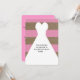 Denna vackra kommer du att vara min brudtjänare dikt inbjudan platt kort har en brudklänning i vitt på framsidan med rosa och tan jute ränder i bakgrunden. På baksidan av inbjudan finns en vacker kommer du att vara min brudtjänare dikt. Copyright henishouseofpaper