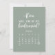 Modern muta frieri kort med kalender. Snygg grönt färg. Du kan byta till maid of honor, hedersbetygelse, blomsterflicka osv. Du kan ge... Det här blir mitt bridantkort som också är en del av en gåva frieri av brudgumm. Anpassa kalender, ändra typsnitt, teckensnitt färger, färg i bakgrunden. Redigera i designläge verktyg om du vill flytta inslag-ramnumret för ditt datum.