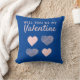 Kommer du att bli mina hjärtans blå Rosa Hearts Valentine's Day Pillow med rosa hjärtan på blå bakgrund? Den vackra Alla hjärtans dagskudde.