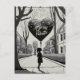 I denna mangaliknande, monokroma bild av "Be min Valentine" visas en silhuett av en flicka med hjärtballong.