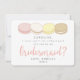 Be dina bästa flickor att stå med dig med dessa vackra kort. Rundade rektangulära kort har en rad Fransk makaroner i pastellhuvar av elfenben, gult, rosa och tan, med en kombination av chic minimalistiskt grått och peachy rosa handskriven stil-skrift. Lägg till din brudgumms namn, ditt namn och din bröllop-dejt för en söt personlig. Standardtexten lyder: "Jag klarar mig inte utan dig! Kommer du att bli min brud?" och kan ändras om så önskas.