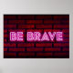 Var modigt inspirerande citattext på gammal tegelvägg. modig, ord, ambition, oro, attityd, svart, block, bräckeri, tegel, tegel, sten, utmaning, klubb, färgstark, betong, självförtroende, mod, mörk, beslutsamhet, vintage, reflektion, illustration.