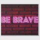 Var modigt inspirerande citattext på gammal tegelvägg. modig, ord, ambition, oro, attityd, svart, block, bräckeri, tegel, tegel, sten, utmaning, klubb, färgstark, betong, självförtroende, mod, mörk, beslutsamhet, vintage, reflektion, illustration.