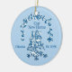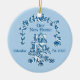 Ett bedårande hem med en blomster ram för att fira ditt nya hem. Personifiera det med staden ditt nya hem ligger i och året. Färgerna är nyanser av blått samt baksidan av prydnaden.