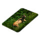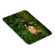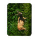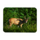 Ett foto av en ung buck, med sammetsborrar, i vissa grönt löv buskar. Copyright ©2017 Kimberly J Tilley.