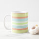 En mjuk men färglös pastel rand i aprikos, rånans äggblått, selleri, vitt och kalkkaffe mugg. Det finns en matchande tabellektor.