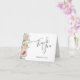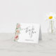 Det romantiska kanten i det här romantiska bröllop-tacket som du använder har en blommigt med vattenfärg, persikor, blommor och grönska. "Tack" i ord visas i handskriftsskript, med namn och bröllop nedan i tecknade grått-färgsteckensnitt. Den omvända sidan har en koordinerande solid skuggning av persikor.