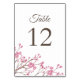 Bordsnummer med rosa blommar av körsbär är perfekt för romantiskt vår bröllop. Utformningen upprepas på baksidan.