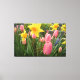 Vår rosa tulip och gult daffodil-blommor canvastryck
