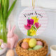 Dekorera dina Påsk träd eller kökskabinettknappar med den söt vår-blommans keramiska prydnadsämne. Denna dekoration har rosa-tulpaner och gult-daffodils med rosa och vit rand. En sådan här söt blommigt skulle vara en tankfull Påsk-gåva till den speciella personen.