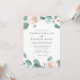 Vår rosafärgade blomsterbröllopsinbjudan är ett utsökt val för den eleganta, moderna bruden och brudgummen. Den har rosa och vita akvarellblommor och grönska för en subtil men intressant design.