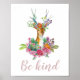 Näringslivet poster "Var vänlig" med hjort för blommigt med vattenfärg.