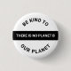 Var snäll mot vår planet, svart, vit knapp för klimatförändring. Kontrollera om det finns matchande koordinatelement i resten av samlingen.