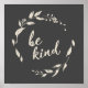 Snyggt och minimalistisk konstskrift med inspirationskänkande citat - må vara vänlig - i vackra manusbokstäver inuti en modern blommigt krämkrans mot svart bakgrund.