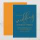 Bröllopsinbjudningar med enkel tema med manus orange och blå sommar eller vår färger