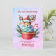 En söt hjort med antlers sitta i en utsökt cupkaka och candy cane med ett meddelande från mamma & pappa. Kortets baksida har också ett meddelande. Bakgrund är en sparsam färgad