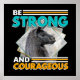 Var stark och modig - ett konstnärligt, typografiskt motiverande citat med ett stort, vild svart fotografi av lamamas porträtt som tagits i Bolivia i Sydamerika. > Tanken på Coola för ett lamamakatabilt älskare eller alpakafläkt. > Anpassade: Lägg till eget namn eller egen text.