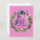 Var stilla och känn i blått och rosa skript, på en rosa bakgrund. Denna utformning grundar sig på bibeln Psalm 46:10 "Var stilla och veta att jag är Gud". Ge är detta ett uppmuntringskort till en vän eller familjemedlem. Du kan ändra bakgrunden färg till vitt eller annat färg genom att klicka på anpassningsknappen.