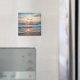 Magnet med soluppgång över havet och "Var stilla och vet att jag är Gud Psalms 46:10" skriven på det. AI genererade.