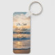 Nyckelkedja med soluppgång över havet och "Var stilla och veta att jag är Gud Psalms 46:10" skriven på den. AI genererade.